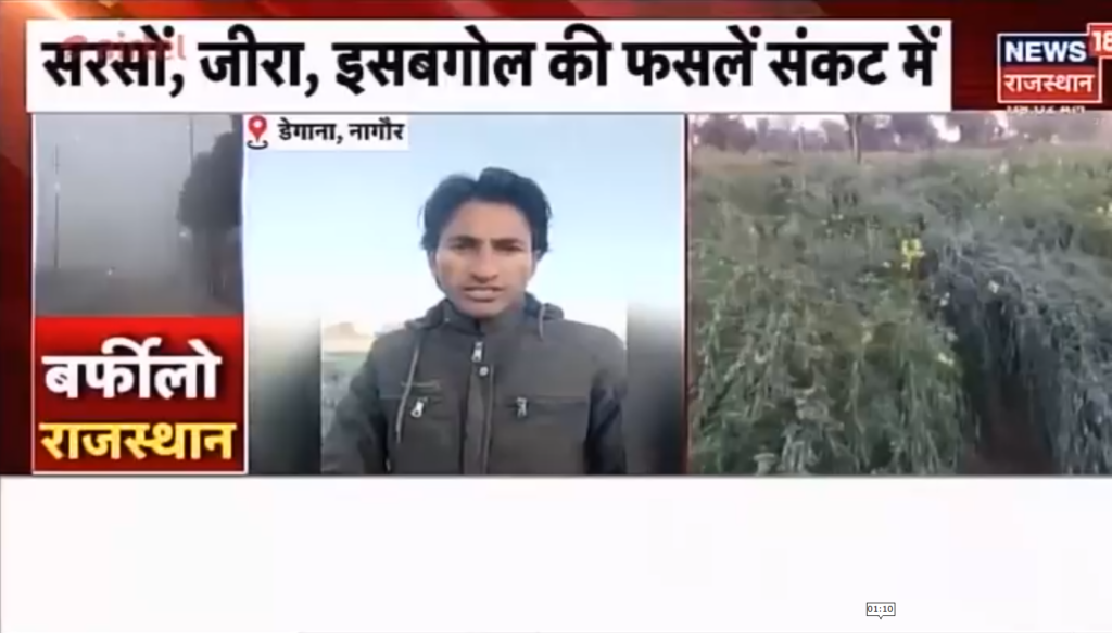 Rajasthan is currently facing an intense cold wave, with frost and extremely low temperatures affecting major agricultural belts. This sudden shift in weather has created serious challenges for psyllium (Isabgol) cultivation, a crop that is highly sensitive to frost—especially during its critical growth and flowering stages.